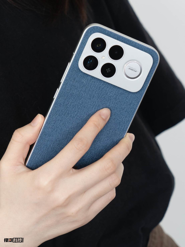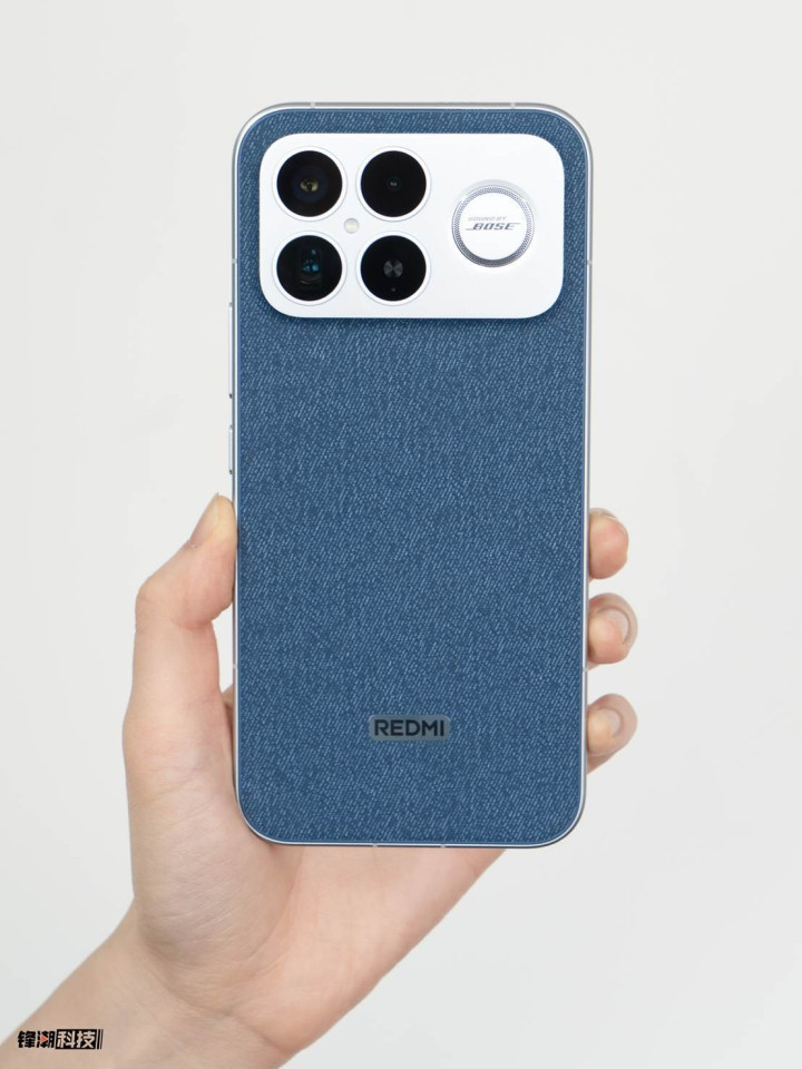 在外观设计方面,REDMIK90ProMax采用直角金属边框搭配直屏设计,背部提供多种配色,其中“丹宁”版本采用了新型有机硅材质,触感细腻且抗污耐磨。创新的三扬声器设计也影响了手机的外观。背部摄像头模组旁,醒目地排列着扬声器开孔,并印有“SoundbyBOSE”标识,彰显其音频实力。