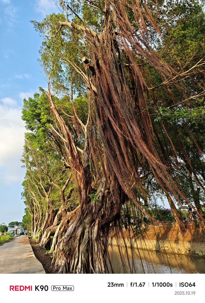 上面这张榕树照片,主摄对复杂细节的处理能力得到了很好体现,不仅树干纹理清晰可见,就连垂下的众多气生根须也根根分明,没有出现模糊或粘连的情况。画面边缘的树叶轮廓锐利,没有出现明显色散。