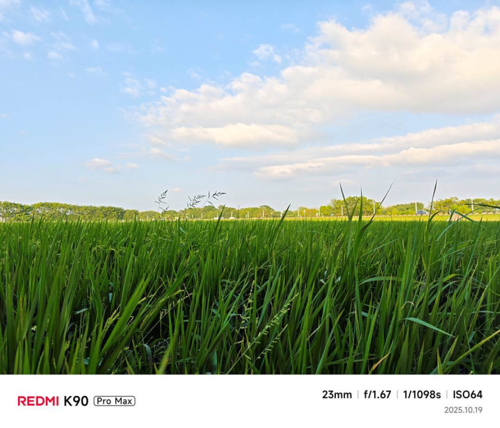 在实际拍摄中,K90ProMax影像系统的表现是令人满意的。主摄在白天光线充足时,色彩还原自然,细节丰富。拍摄蓝天白云下的稻田时,主摄能够准确还原天空纯净的蓝色与水稻的翠绿色,白云的层次分明,边缘清晰。画面整体通透,色彩明快但不过分浓艳,呈现出接近肉眼所见的真实感。