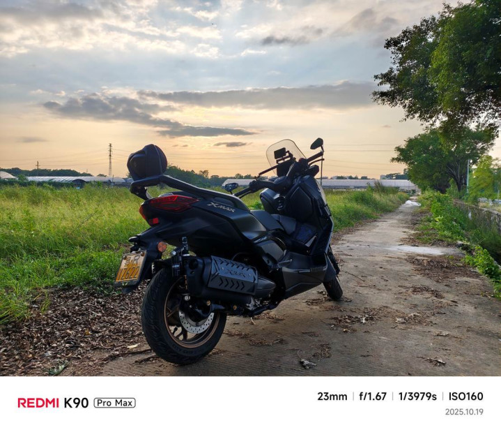 在夕阳时分拍摄稻田边的摩托车,在光线对比强烈的环境下,主摄展现出了优秀的动态范围。既能保留夕阳暖调的韵味,又能清晰呈现摩托车金属部件的细节。