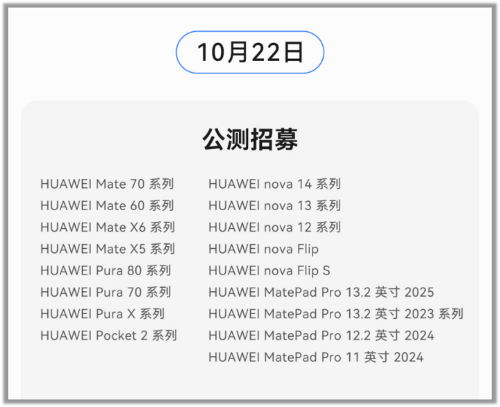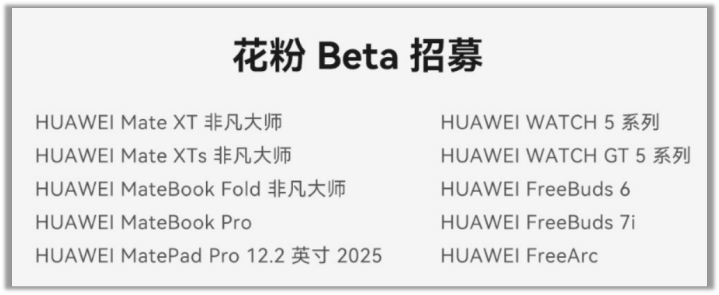 首次参与系统测试的用户,请通过「我的华为」APP申请加入公测计划。请注意:此测试版本尚不稳定,可能存在卡顿、耗电异常等未知问题,请谨慎评估风险后操作。建议在稳定网络环境下升级,并确保预留至少10GB存储空间,避免升级失败。